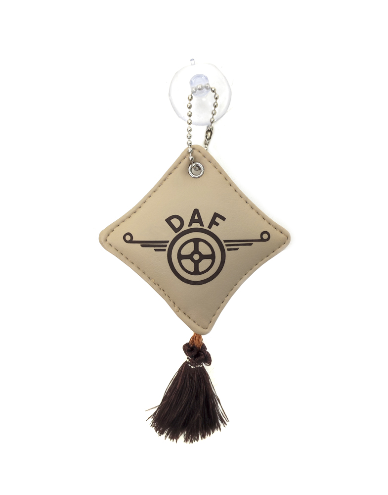 Подвеска - подушечка с логотипом "DAF" из экокожи с кисточкой. Логотип с маркой автомобиля выполнен путем термопереноса.