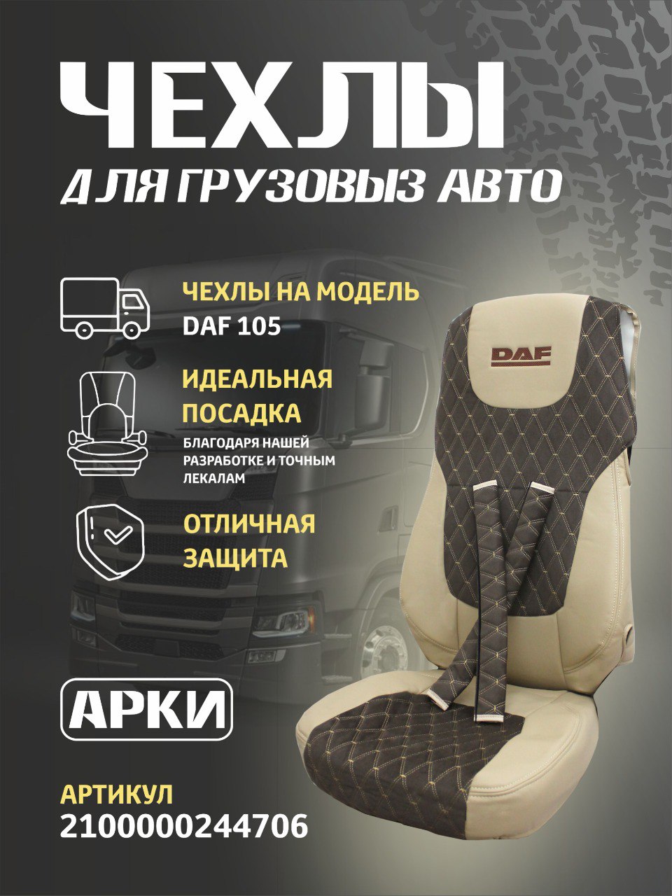 Чехлы DAF 105 LX Велюр Экокожа вышивка Бежевый/ Fox