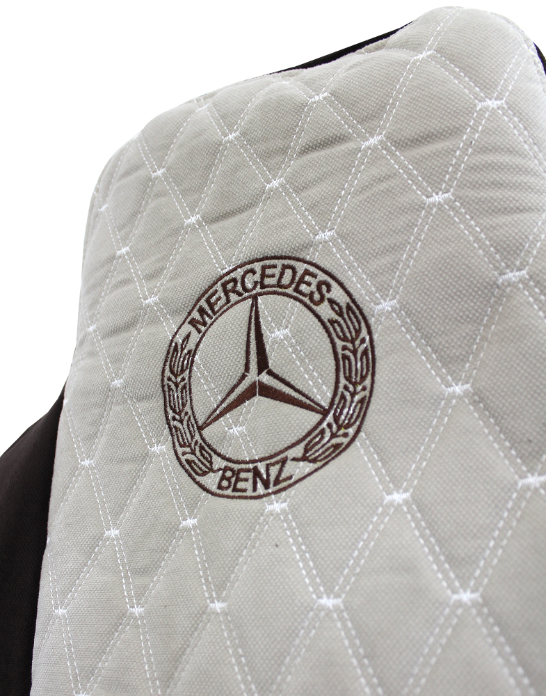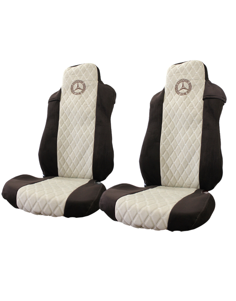 Чехлы для грузового автомобиля MERCEDES Actros MP3 . Изготовлены из ткани кабрио коричневого и бежевого цвета. Триплируются поролоном высокой плотности толщиной 5мм, что придает чехлам мягкость и сохранность от быстрого истирания.