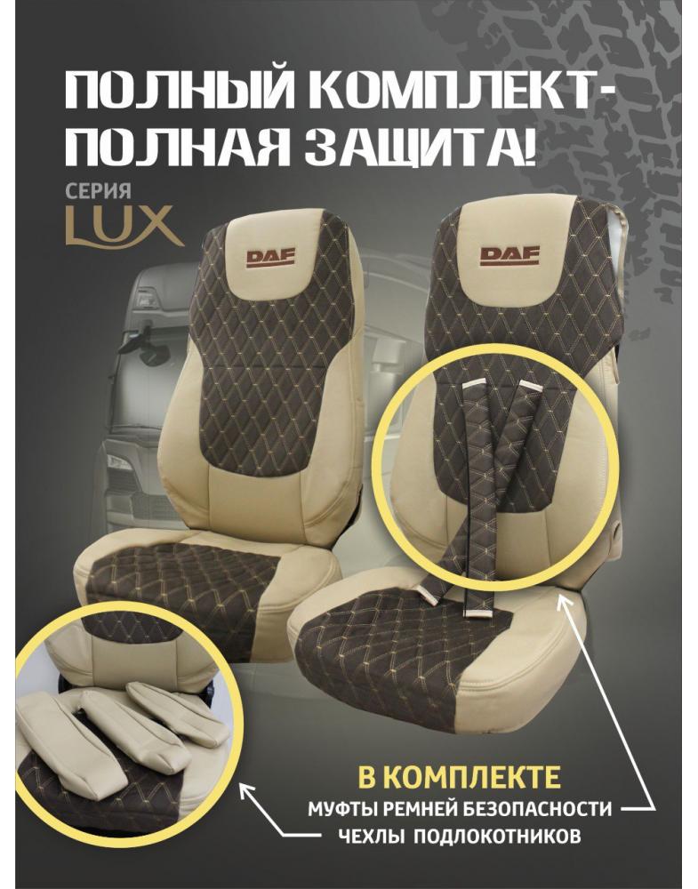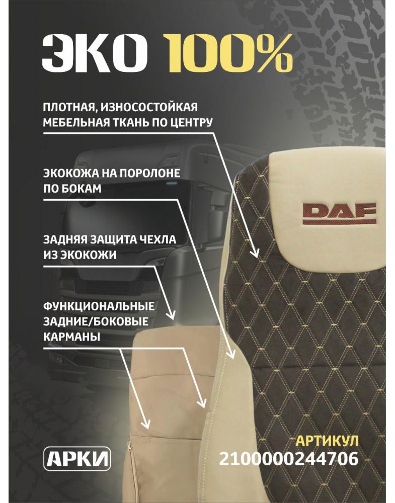 Чехлы DAF 105 Экокожа/ Кабрио Коричневый Вышивка 2100000244706