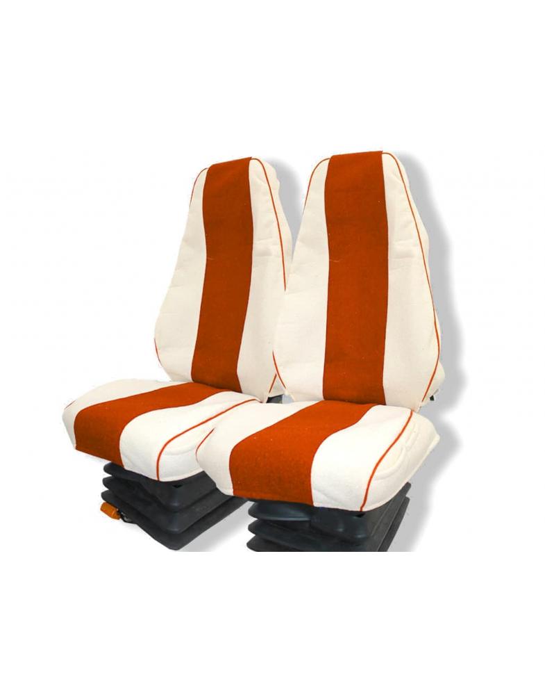 Базовые Чехлы на VOLVO FH изготовлены из комбинации двух цветов ткани "Астра" бежевой и красный, задняя часть из качественной искусственной кожи. Ткань триплируется на поролон высокой плотности толщиной 5мм на собственном оборудовании, что придает чехлу мягкость и высокую сохранность от быстрого истирания.