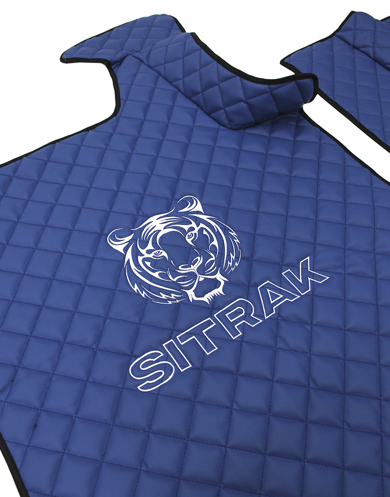Логотип - Вышивка / Ткань - Экокожа / Цвет ткани - Синий / Кант - Черный /