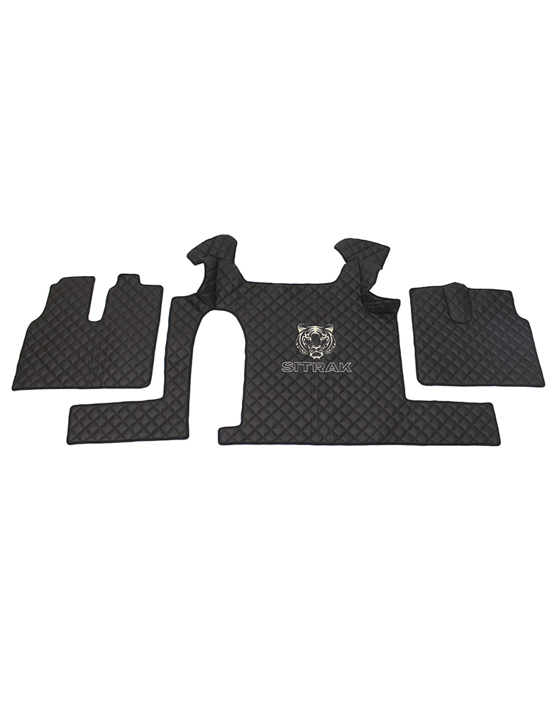 Коврик на грузовые фуры SITRAK. Изготовлен из коричневой экокожи с ромбовидной стежкой. Коврики отшиваются на собственном производстве, по специально созданным авто лекалам под конкретную модель с учетом всех особенностей салона. Они практичны (их легко мыть и чистить), надежно защищают заводскую обивку салона от влаги и грязи, не имеют запаха. Коврики смотрятся стильно и презентабельно.