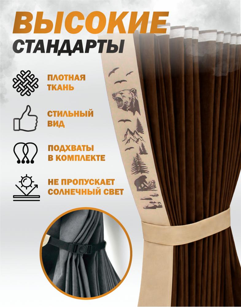 Шторы лобового окна 90х270, вставки с гравировкой Коричневый Медведи 2100000254064
