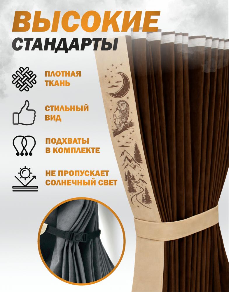 Шторы лобового окна 90х270, вставки с гравировкой Коричневый Совы 2100000254071