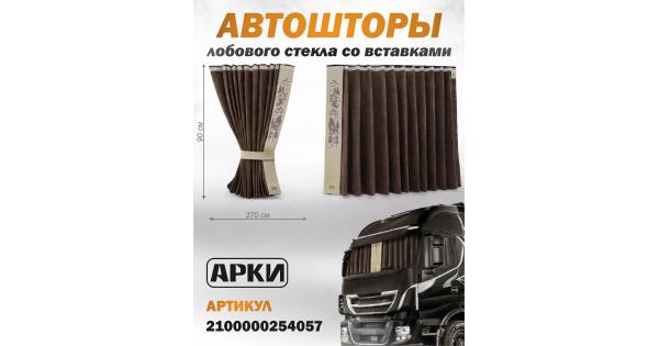 Шторы лобового окна - 240х90 / Логотип - Вышивка / Ткань - Кабрио / Цвет ткани - Бежевый/ Коричневый /