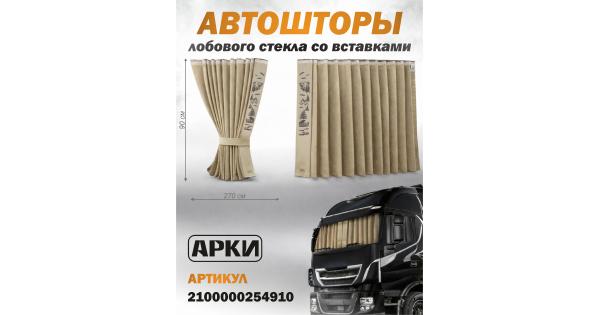 Шторы лобового окна - 220х90см / Логотип - Вышивка / Ткань - Астра / Цвет ткани - Бежевый /
