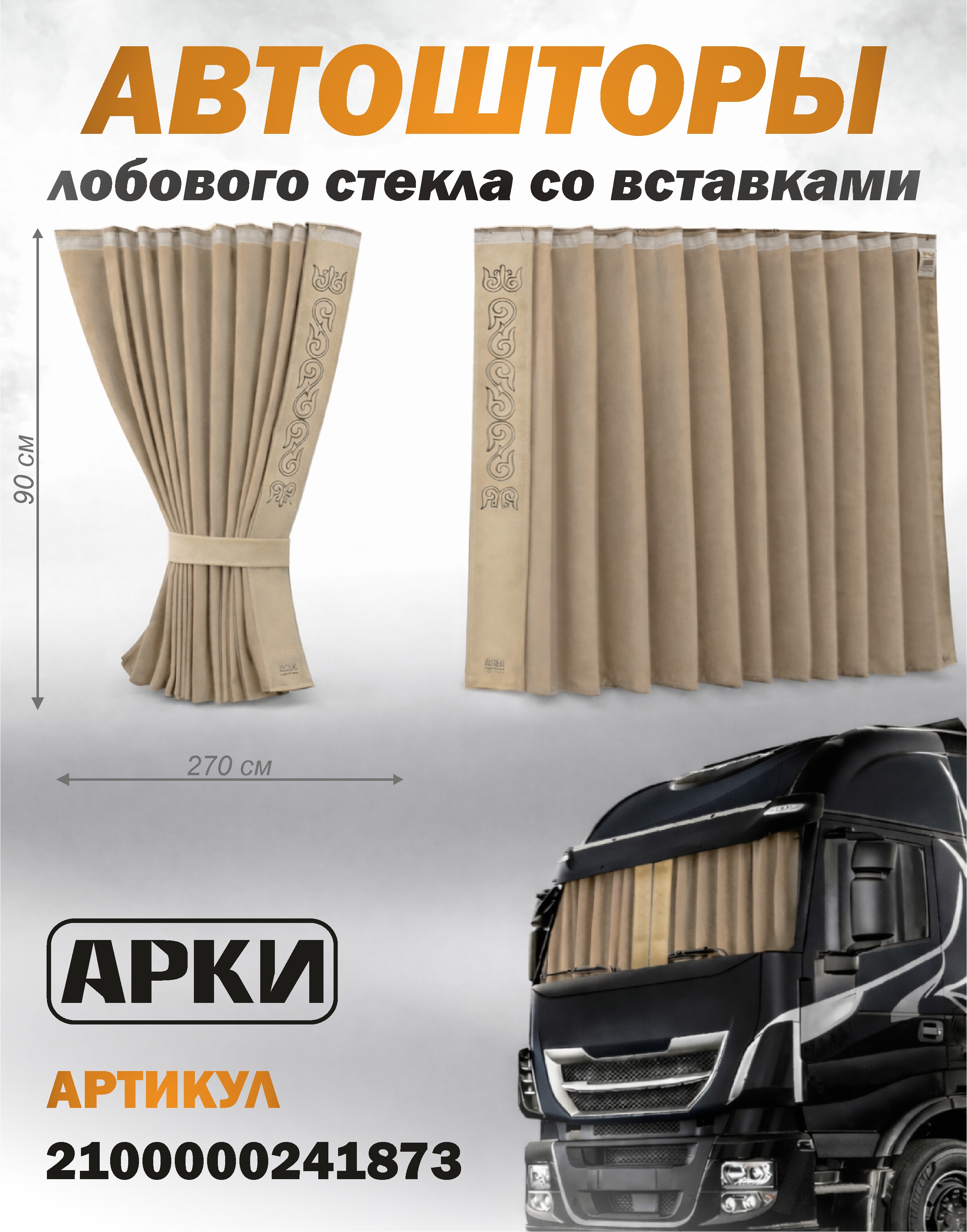 Шторы лобового окна 90х270 Бежевый Восточный