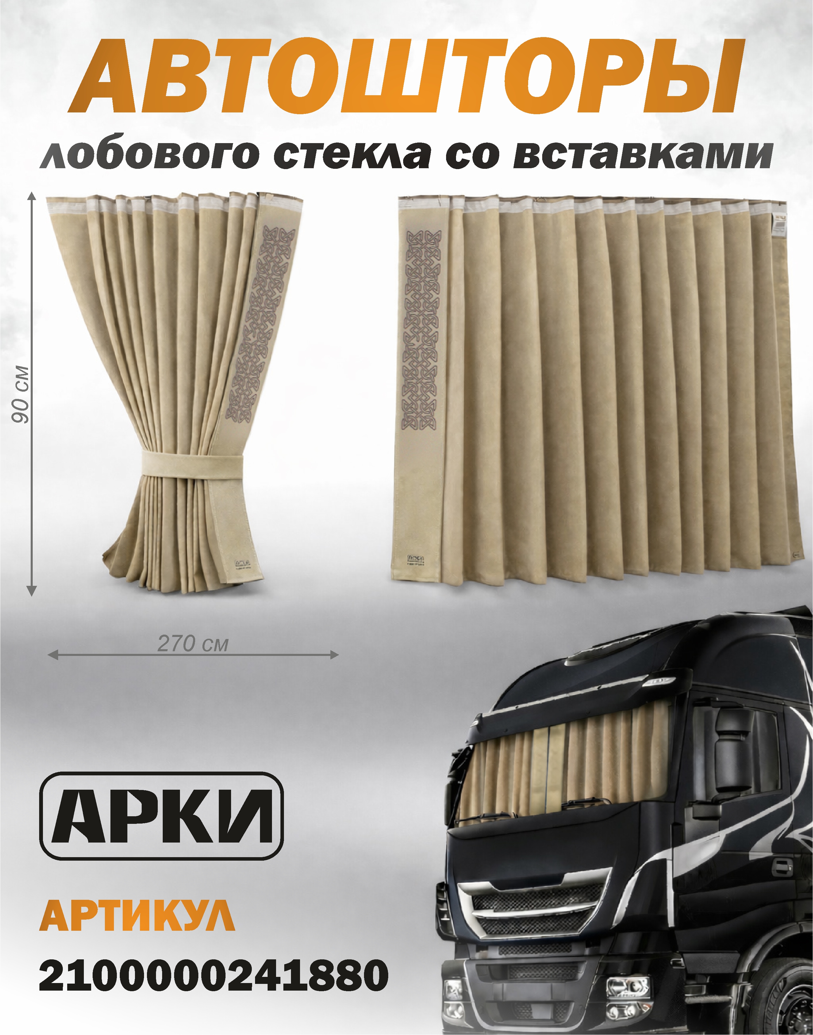 Шторы лобового окна VOLVO (90х240) бежевый/коричневый