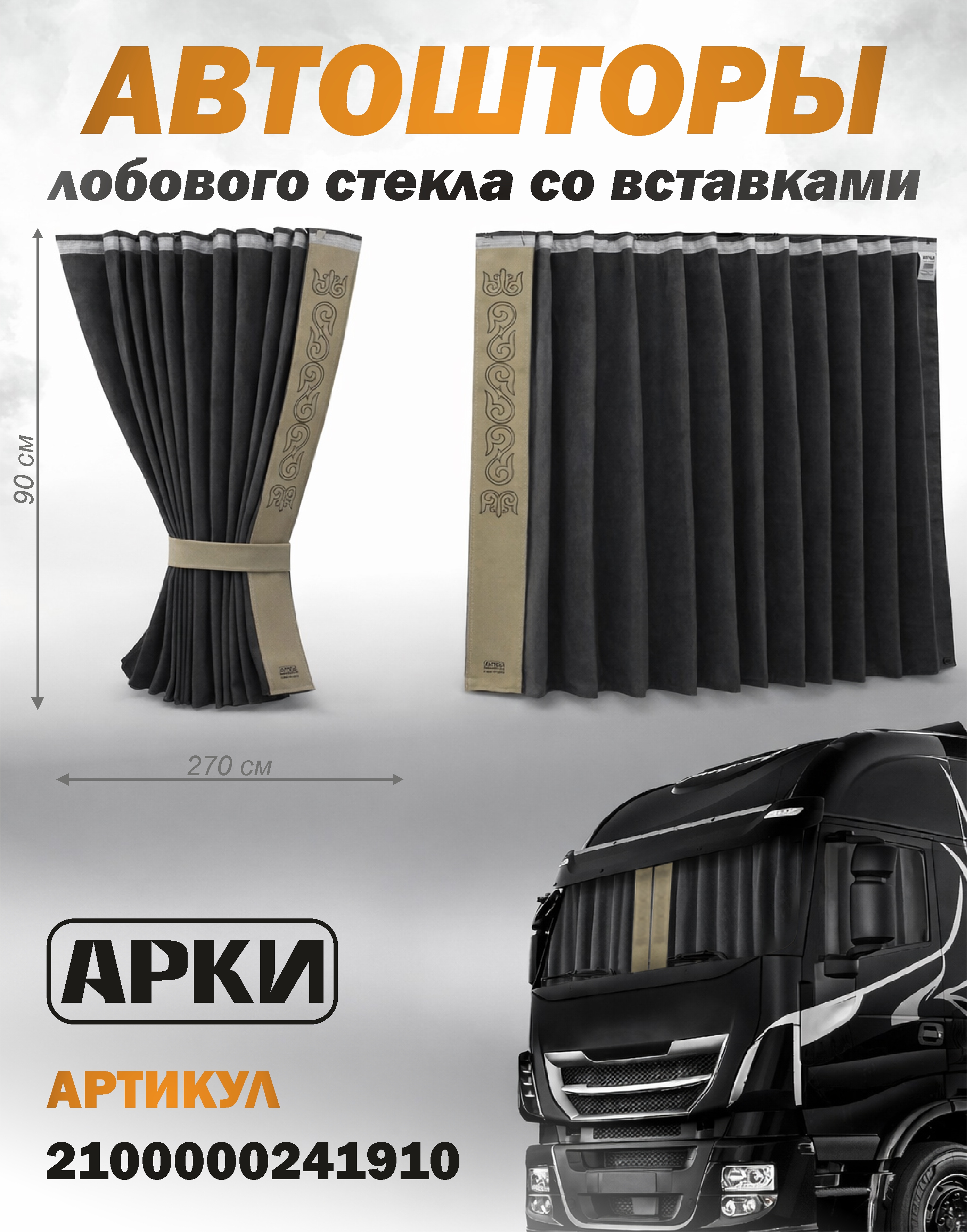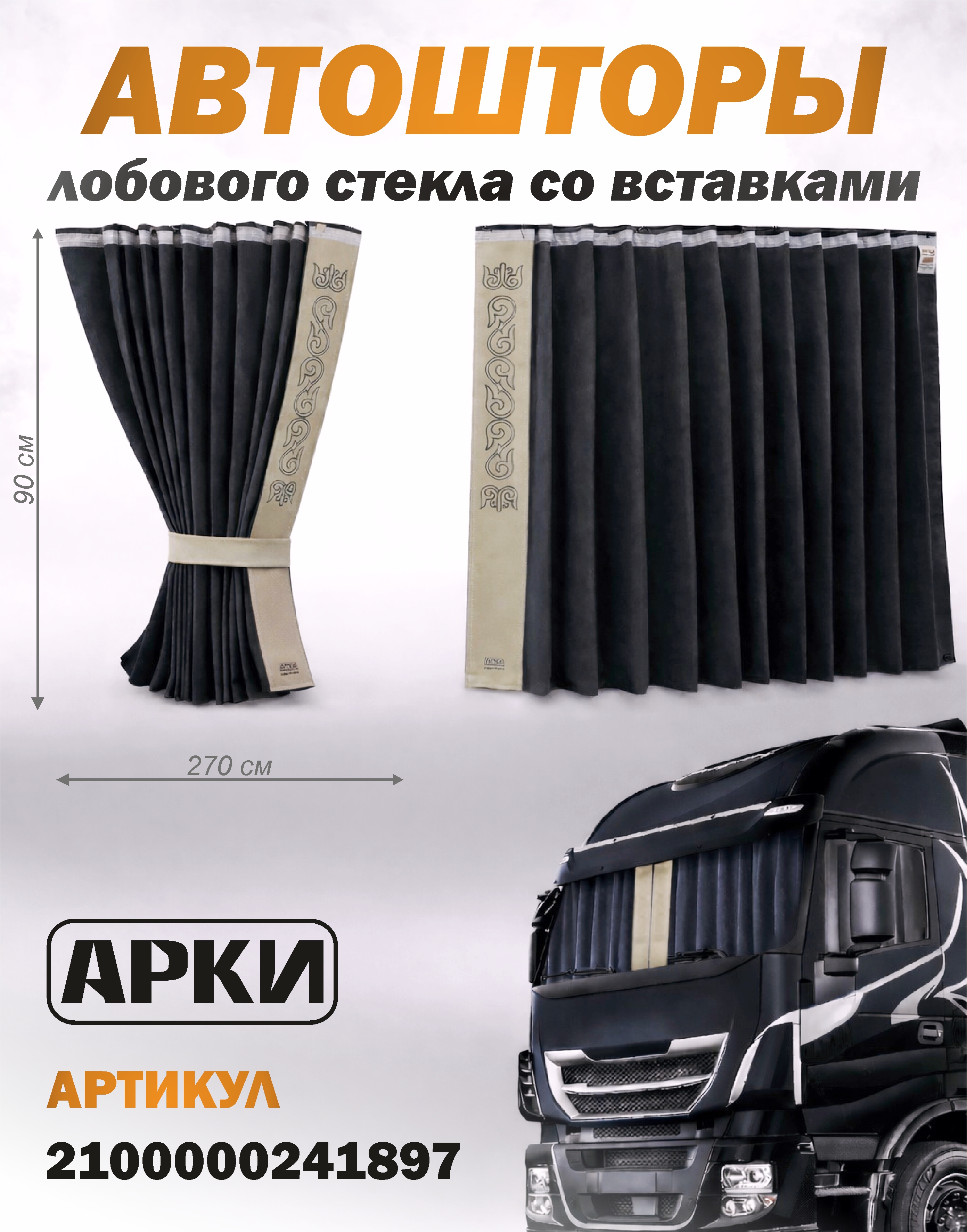 Шторы лобового окна 90х270 Чёрный Восточный