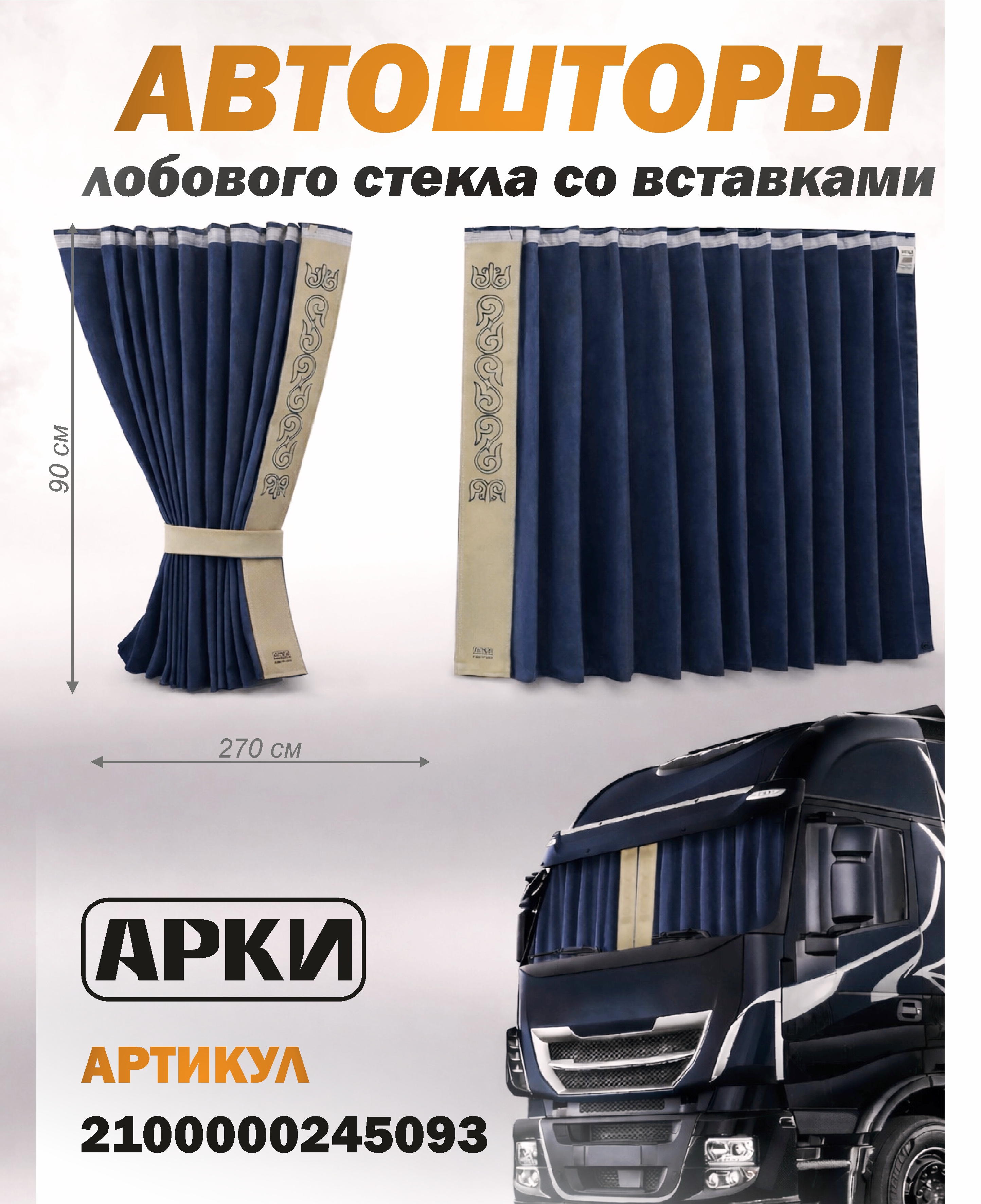 Шторы лобового окна 90х270 Синий Восточный