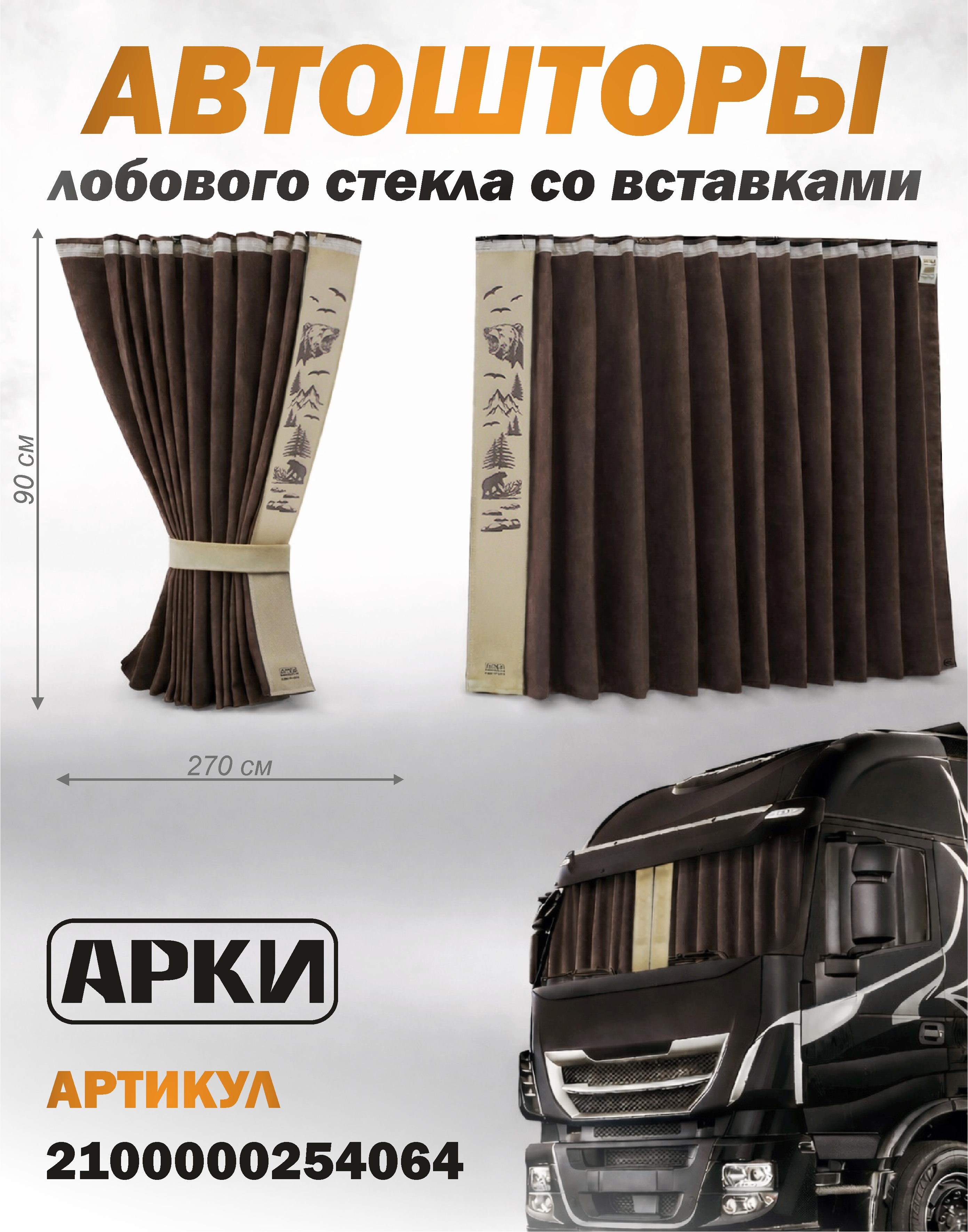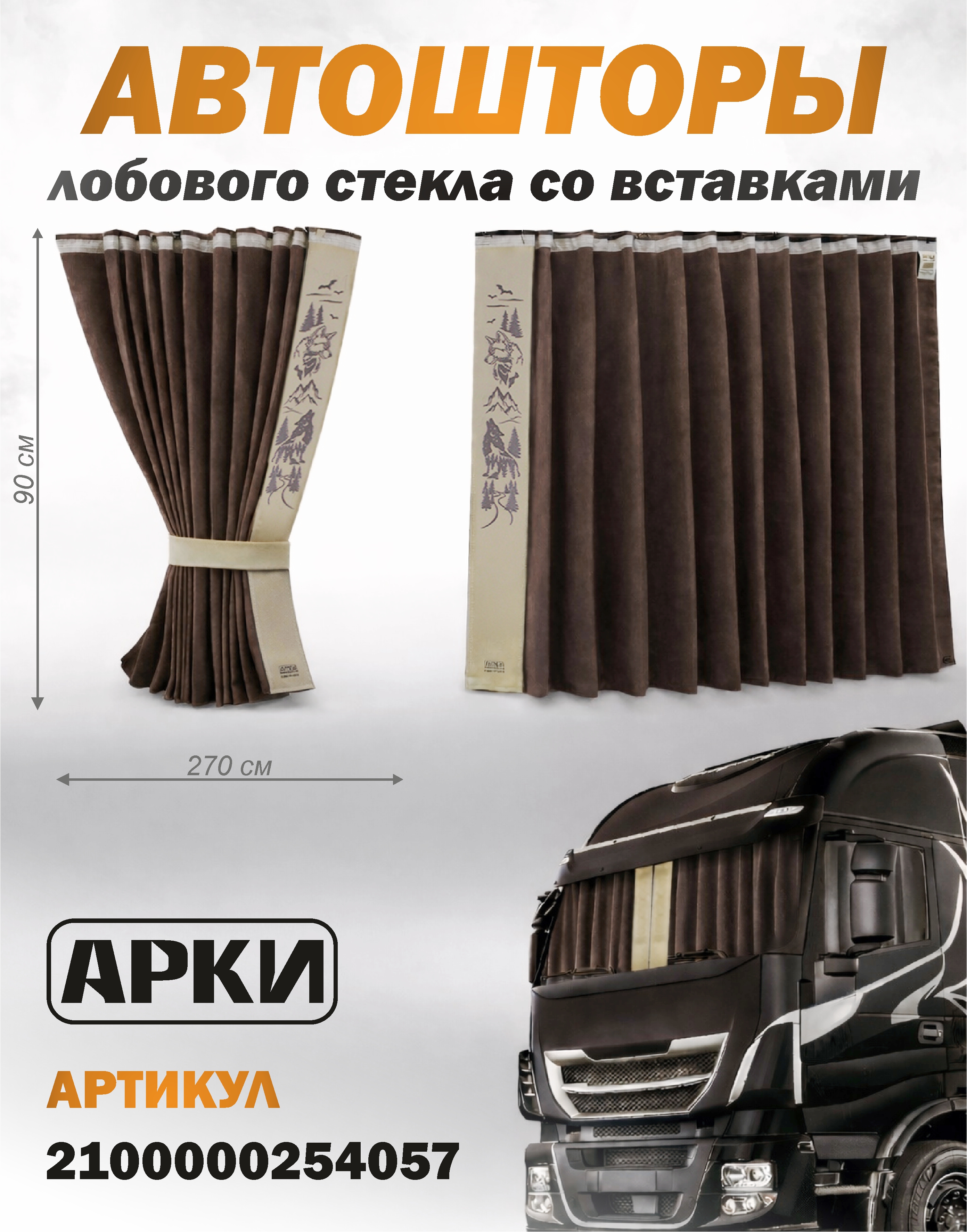 Шторы лобового окна 90х270 Коричневый Скандинавский