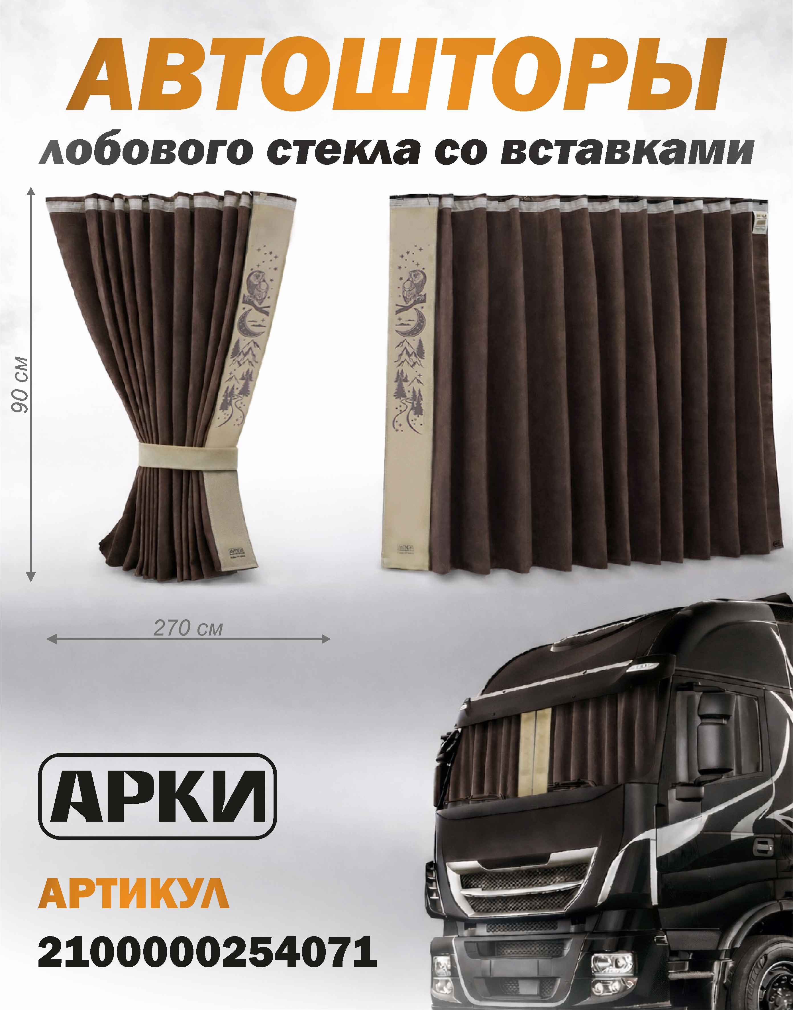 Шторы лобового окна 90х270 Коричневый Восточный