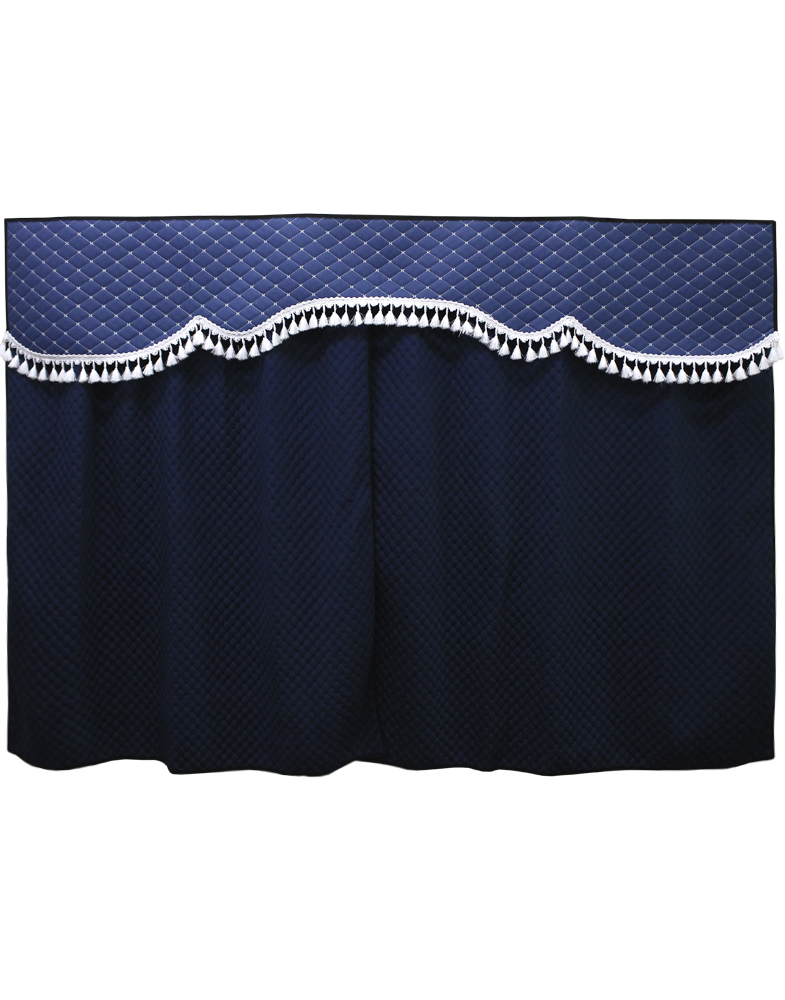 Ламбрекен спального места - 205см / Шторы спального места - 140х120см / Ткань - Велюр/атлас / Цвет ткани - Синий / Бахрома - Кисточки